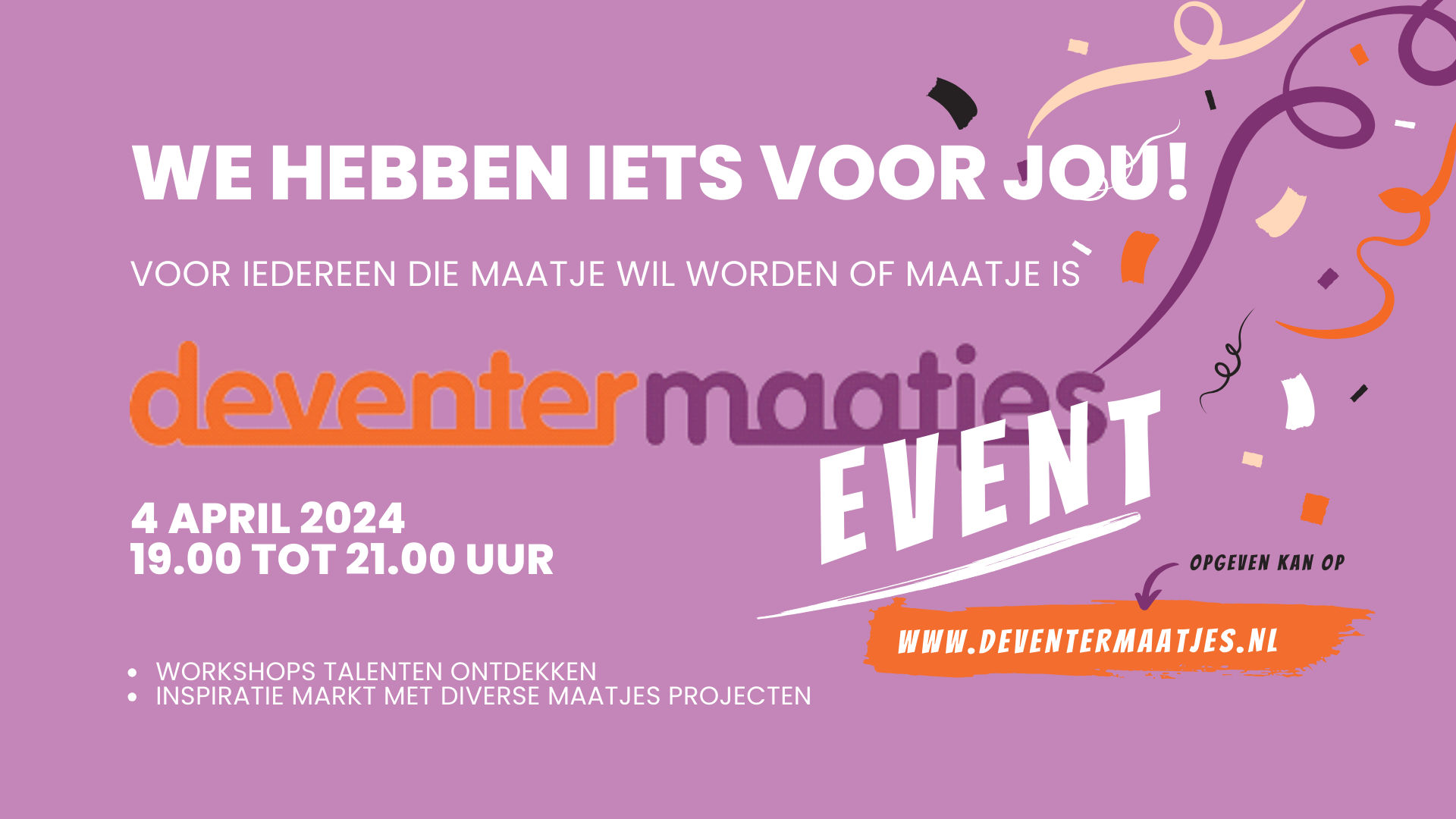 We kijken uit naar een inspirerende avond waar we samen de kracht van de maatjesprojecten in de gemeente Deventer bundelen en benadrukken.